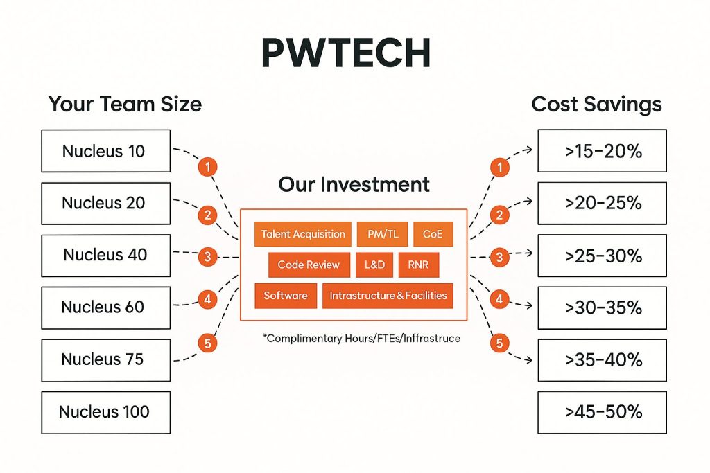 Easily scale your team, resources, and development capability with flexible, future-ready engagement models.